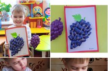 Аппликации «Виноград» для детей дошкольного возраста изготавливается из цветной бумаги. Работы максимально упрощены и не подразумевают никаких сложных действий. Родителям нужно будет лишь помочь вырезать отдельные элементы, чтобы ребенок не поранился ножницами, а остальное он должен сделать своими руками. Ведь самостоятельное изготовление подобных поделок отлично развивает моторику рук и внимание, приучает к усидчивости, что очень пригодится в школьные годы.