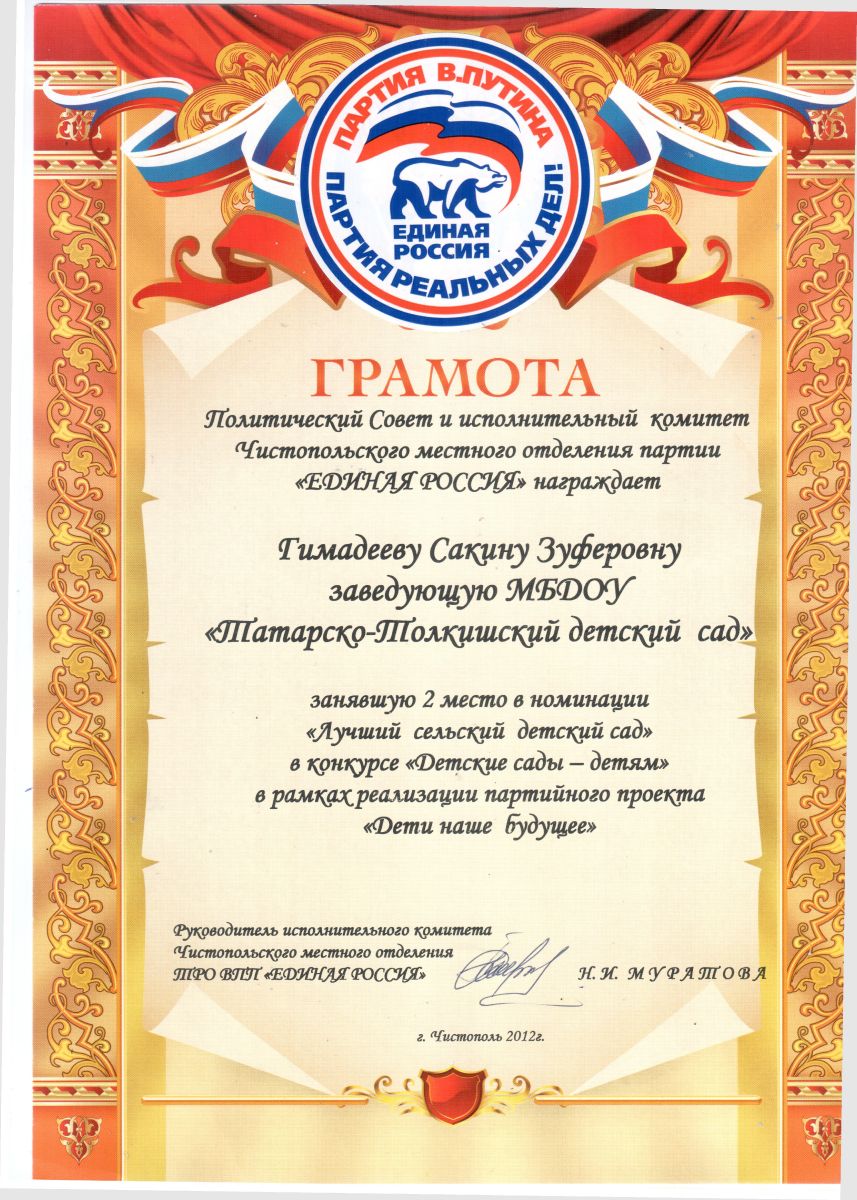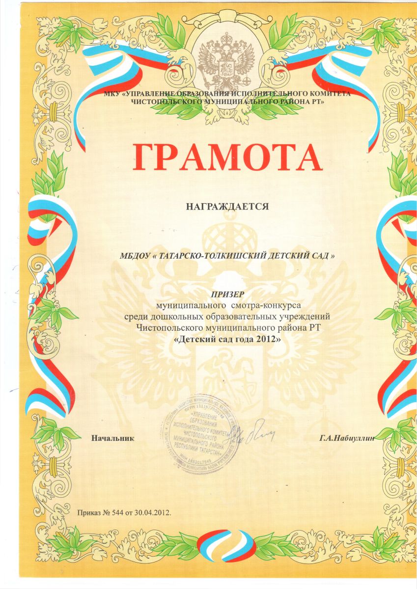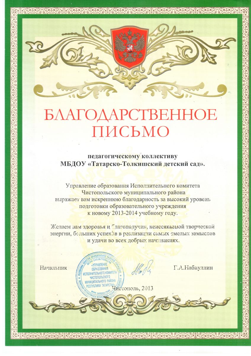 Муниципальное бюджетное дошкольное образовательное учреждение «Татарско-Толкишский детский сад» Чистопольского муниципального района Республики Татарстан