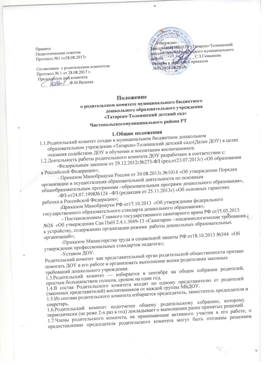 Муниципальное бюджетное дошкольное образовательное учреждение «Татарско-Толкишский детский сад» Чистопольского муниципального района Республики Татарстан