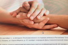 26 сентября т.г. в Аппарате Уполномоченного по правам ребенка в Республике Татарстан (г Казань, ул. Карла Маркса. д. 61) пройдет очередной День психологической помощи.