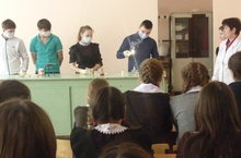 8 февраля в рамках недели химии в школе, учащиеся 10 класса под руководством учителя проводили мероприятие по теме "Химические фокусы - открываем секреты."