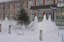 Яңа елны зарыгып көтәбез. Мәктәп каршысында куңелләргә куаныч өстәп, бизәлгән яшел чыршы утыра. Аның тирәсендә кардан ясалган сыннар бик матур күренә.