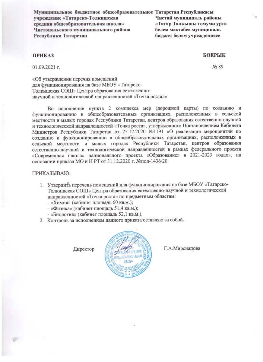 Короткое название: МБОУ "Татарско-Толкишская СОШ"