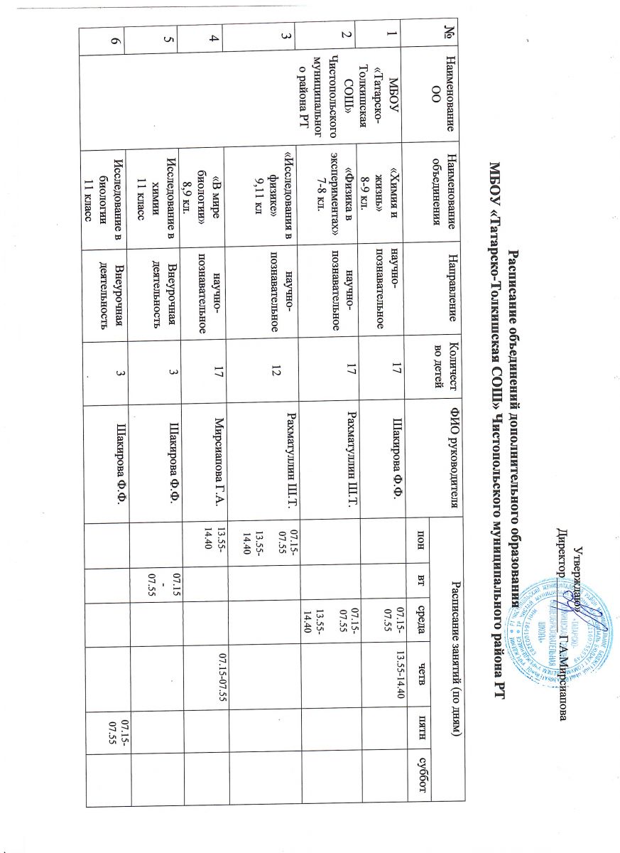 Расписание объединений дополнительного образования и внеурочной деятельности.