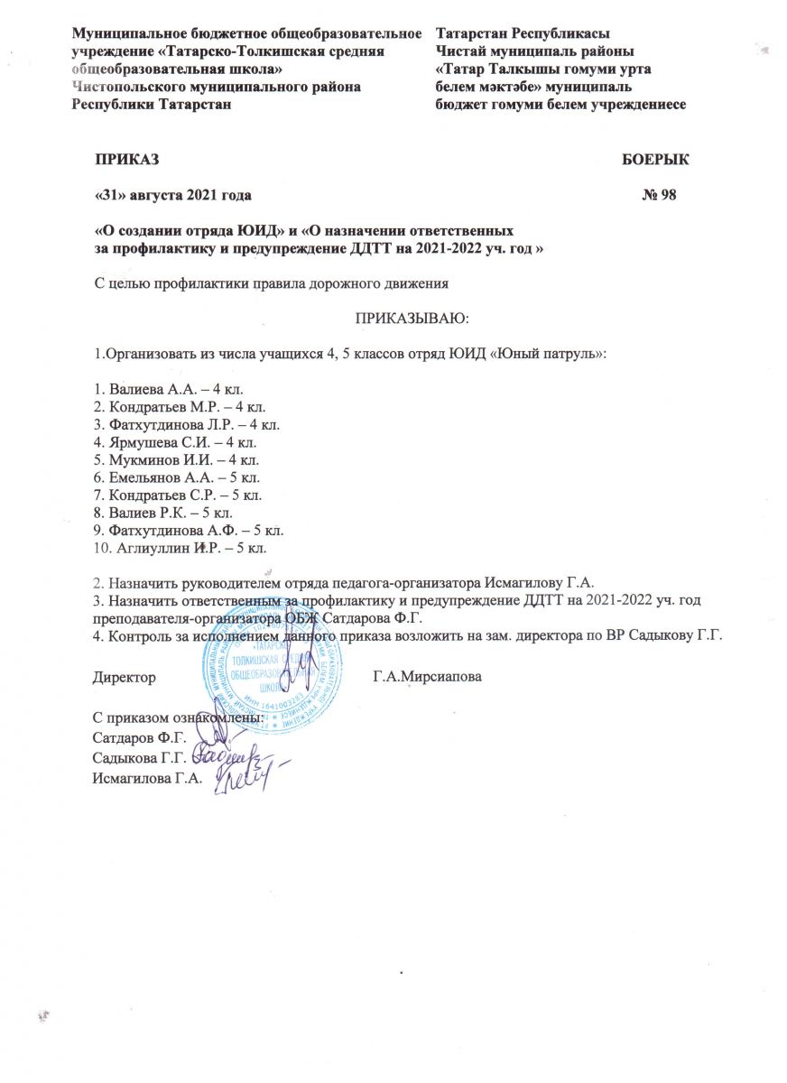 Муниципальное бюджетное общеобразовательное учреждение «Татарско-Толкишская средняя общеобразовательная школа» Чистопольского муниципального района Республики Татарстан