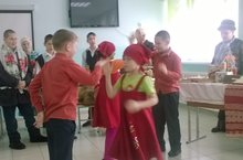 Состоялась веселая ярмарка , где ребята продавали, покупали, обменивались. На ярмарке выступали веселые скоморохи, звездочет, звучала музыка, под который учащиеся начальных классов исполняли русский народный танец.Учитель математики Закирова А.И. рассказывала и показывала о старинных мерах длины.