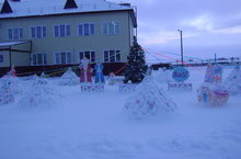 Для создания новогоднего настроения во дворе школы строили снежные фигуры.
