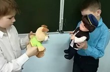 Учащиеся 3 класса вместе с классным руководителем Валиевой Г.З после прочтения стихотворений Г.Тукая инсценируют главгых героев его произведений.