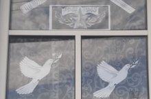 Ученик 9 класса Замалеев И. участвует в акции "Окна победы".