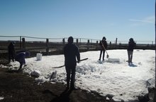 На территории школы идет средник, где учащиеся принимают активное участие по очистке территории школы-интерната от снега.