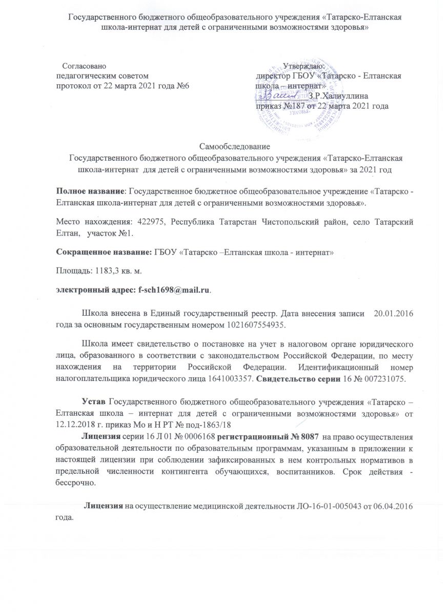 Государственное бюджетное общеобразовательное учреждение «Татарско-Елтанская школа-интернат для детей с ограниченными возможностями здоровья"/ "Сәламәтлек мөмкинлекләре чикләнгән балалар өчен Татар Ялтаны интернат мәктәбе" Дәүләт бюджет гомуми белем учреждениясе