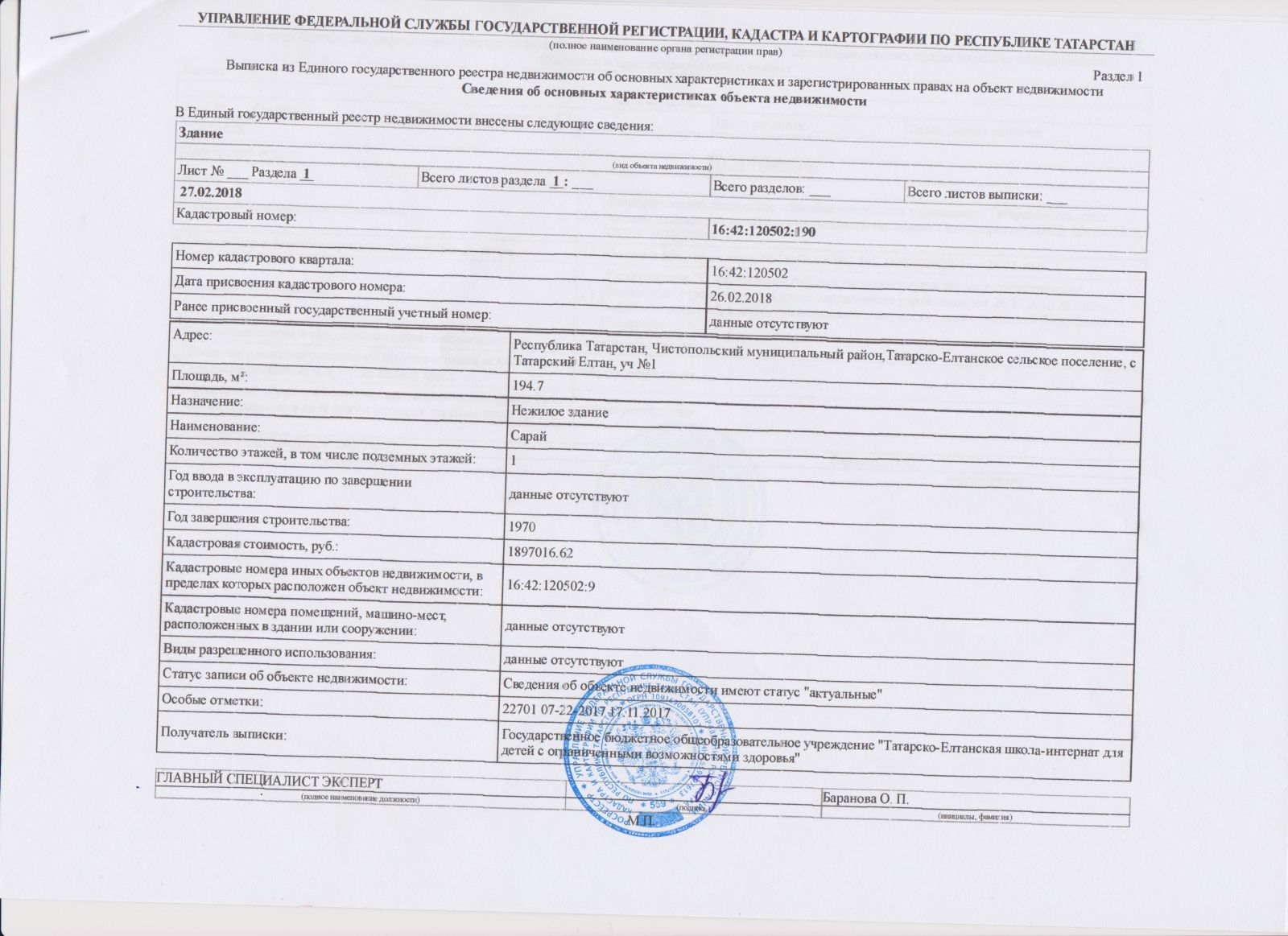 | Адрес: | 422975, Республика Татарстан, Чистопольский район, с. Татарская Елтань, участок №1/ Татарстан Республикасы Чистай районы, Татар Ялтаны авылы, беренче номерлы кишәрлек |