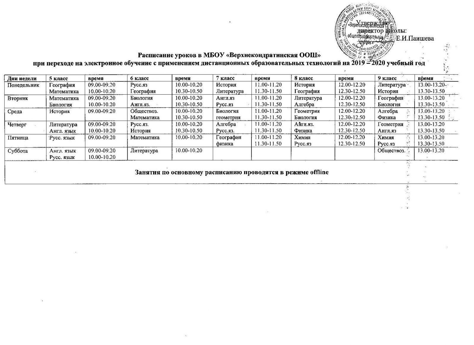 Расписание онлайн-уроков для учащихся 5-9 классов