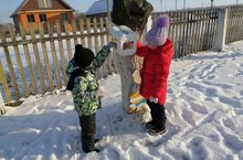 Трудно пищу добывать.Дети во время дневной прогулки подкармливают птиц.