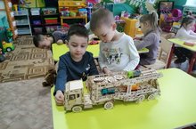 Дети во время самостоятельной деятельности рассматривают автомобиль "Автовоз".