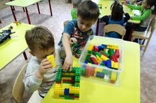 Городом назвать с трудом.Дети младшей группы в свободное время любят играть с настольным строительным материалом. -