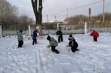 Играть в снежки!Дети во время дневной прогулки играют в подвижную игру "Снежки".