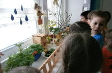 Дети старше-подготовительной группы во время наблюдения за растениями.