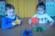 Игра "Прищепочки". Дети ясельной группы во время игры развивают мелкую моторику и закрепляют название цвета.