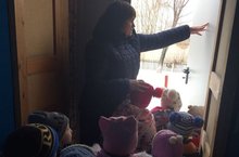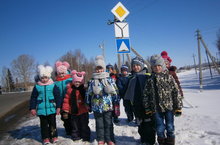 Дети старше-подготовительной группы во время прогулки по ближайшим окрестностям закрепили правила дорожного движения и некоторые дорожные знаки, которые встречались им на дороге.