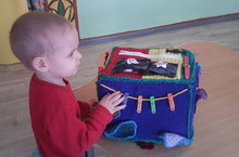Дидактический кубик. С его помощью дети ясельной группы развивают мелкую моторику и мышление.