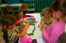 Дети старше-подготовительной группы в свободное время любят играть с настольным строительным материалом.