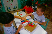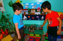 Во время самостоятельной деятельности дети старше-подготовительной группы решили построить дорогу из настольного строительного материала.