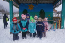 Дети старше-подготовительной группы во время прогулки.