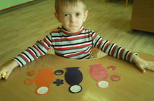 Дети ясельной группы во время дидактической игры "Разноцветные матрешки".