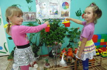 Все растения полей-ка!Дети старше-подготовительной группы поливают комнатные растения.
