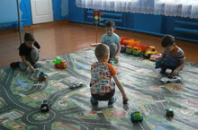 Дети старше-подготовительной группы во время самостоятельной деятельности закрепляют правила дорожного движения.