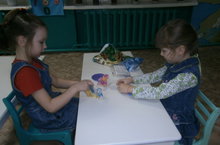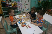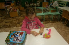 Старше-подготовительная группа во время утреннего приема. Ангелиночка пришла первой и сразу же села играть со своими любимыми игрушками.