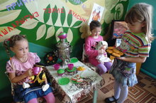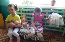 Дети старше-подготовительной группы играют в сюжетно-ролевую игру "Детский сад".