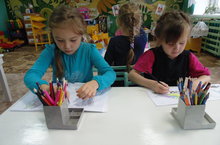 Небывалой красоты. Дети старше подготовительной группы раскрашивают раскраски.
