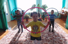 Дети старше-подготовительной группы во время образовательной деятельности "Физическое развитие".