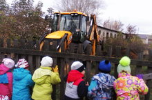 Воспитанники ДОУ во время дневной прогулки наблюдали за экскаватором. -