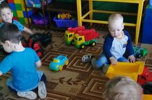 В рамках календарного плана, дети 1 и 2 мл. гр. играют с различными машинами.