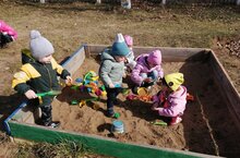 Идем играть, дружок.В рамках календарного плана, дети во время дневной прогулки играют на песочнице.