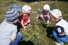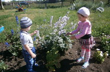 Дети ясельной группы во время прогулки наблюдали за Дельфиниумом.