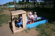Ветер дует мне в стекло.Мне сегодня повезло.Дети ясельной группы под руководством воспитателя Тухватуллиной В.П. во время прогулки играли в с/р игру "Шофер"