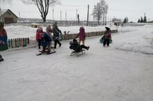 В рамках календарного плана, дети во время дневной прогулки катают друг друга на санках.