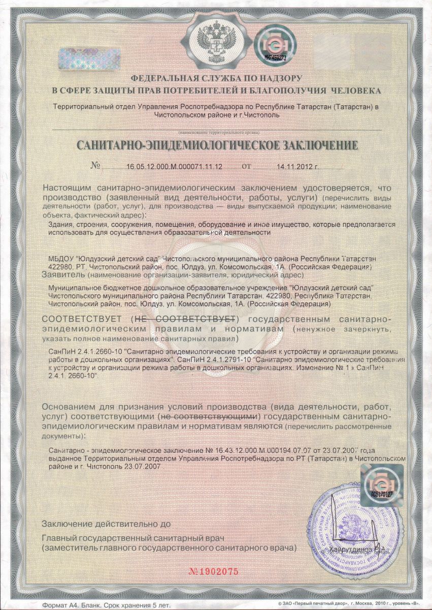 Санитарно - эпидемиологическое заключение