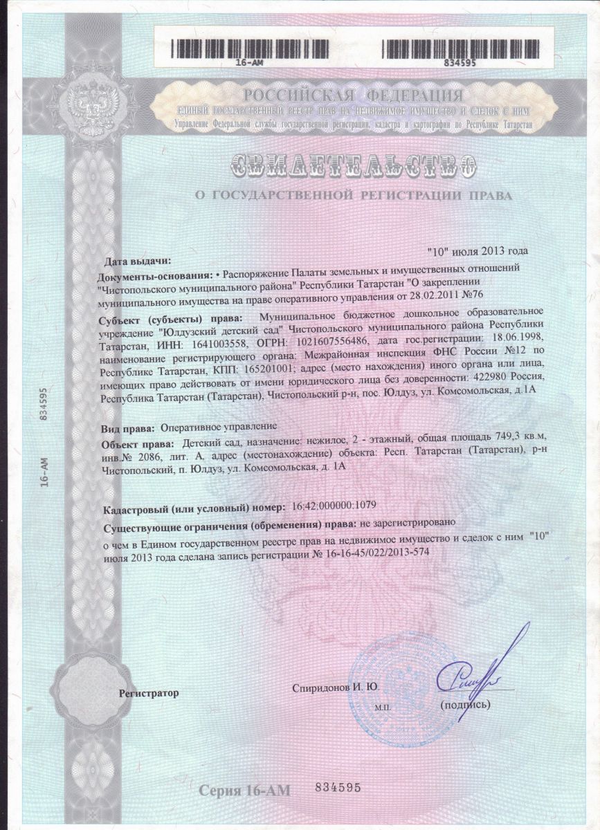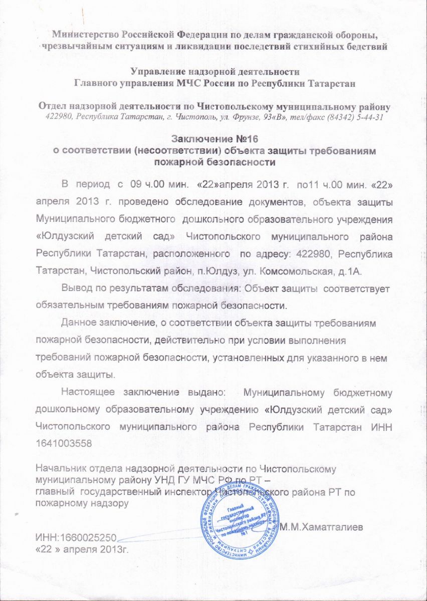 | Адрес: | 422988, Республика Татарстан, Чистопольский район, пос. Юлдуз, ул. Комсомольская, д. 1А |