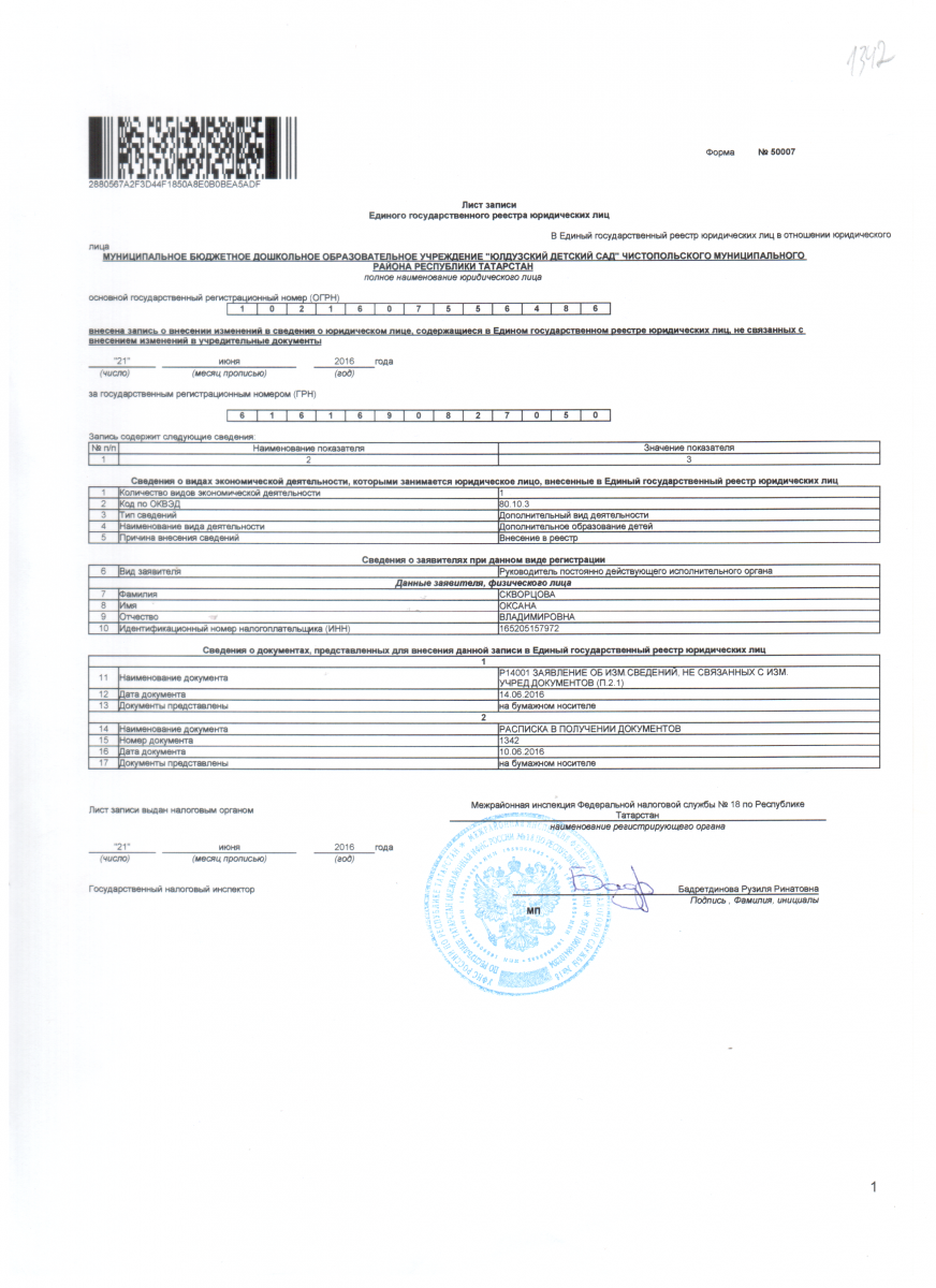 Лист Единого государственного реестра юридических лиц