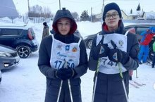 Участники спортивного мероприятия "Молодёжь.Лыжи.ЗОЖ" наши восьмиклассники Киямов Т. и Галимов Р.