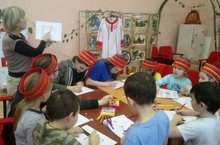 Работники клуба рассказали детям толкование узоров. Например :солнце - гармония согласия. Поле - зерно, сеятель добра...