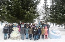 около школы появились снежные фигуры.Сделали их сами ученики.Полюбуйтесь,какие красивые сказочные герои!