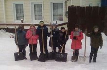 Тимуровский отряд 5 класса помогает очистить снег у людей престарелого возраста