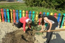 В рамках урока чистоты 8 класс посадили по периметру новой детской площадки 36 красавцев дубов.Пусть растут на радость детишкам!