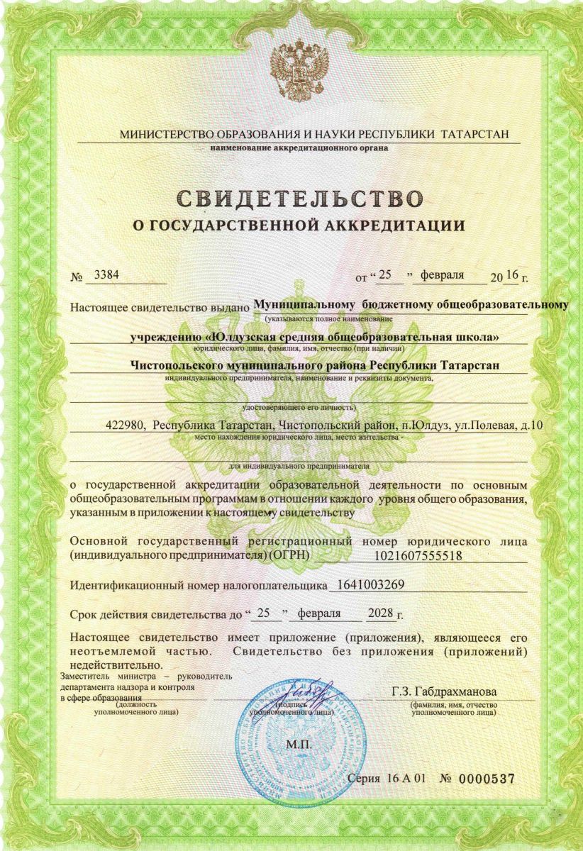 Муниципальное бюджетное общеобразовательное учреждение «Юлдузская средняя общеобразовательная школа» Чистопольского муниципального района РТ/ Татарстан Республикасы Чистай муниципаль районы "Йолдыз урта гомуми белем мәктәбе" муниципаль бюджет гомуми белем учреждениесе